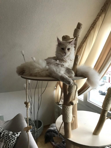 Hier haben wir einen bereits bestehenden Naturkratzbaum umgebaut, so dass die Liegeflächen mit den Katzen mitgewachsen sind ;-).